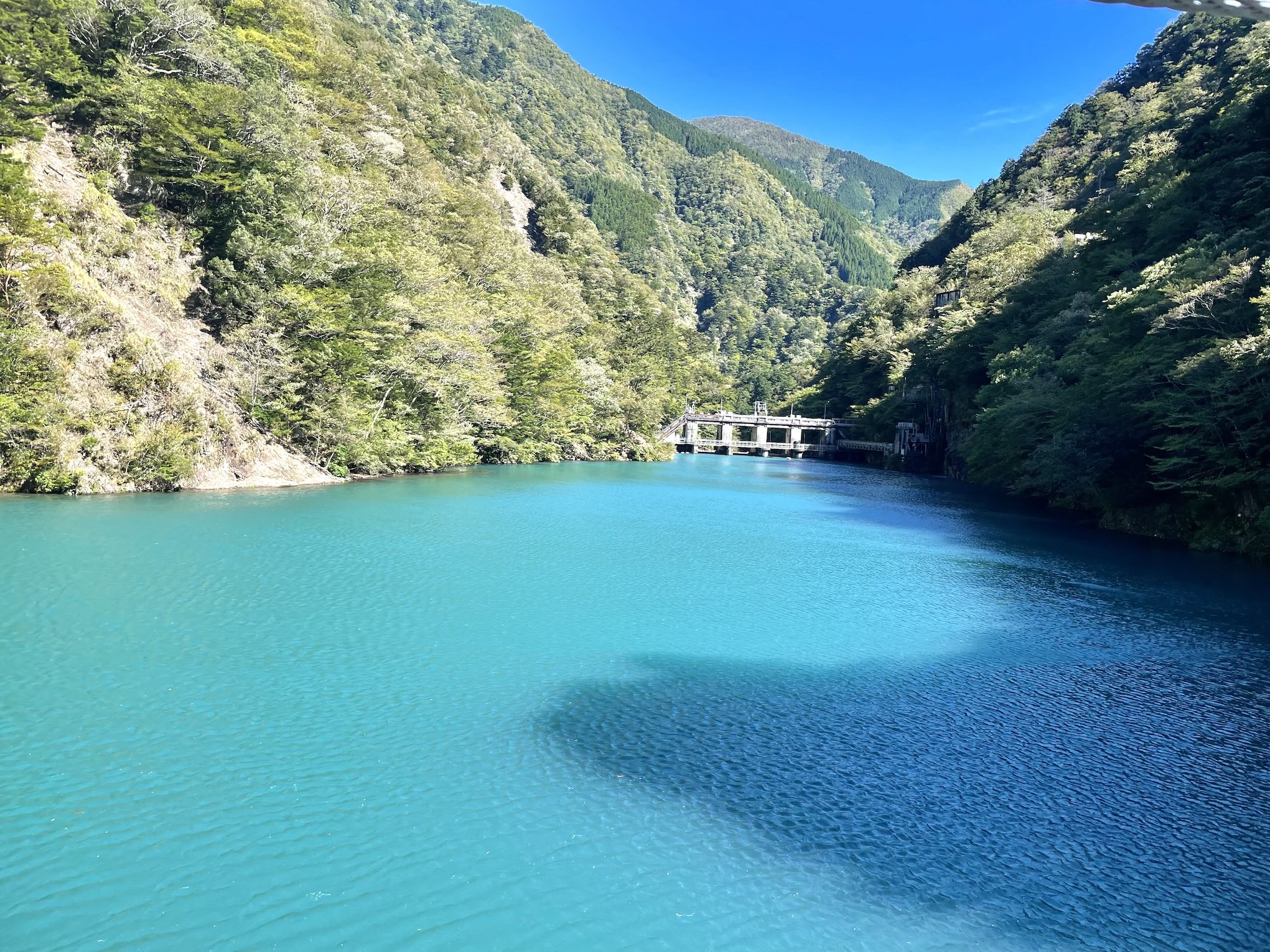 この色は、ダム湖の水質や光の反射、川底の鉱物成分などが影響しているといわれています。