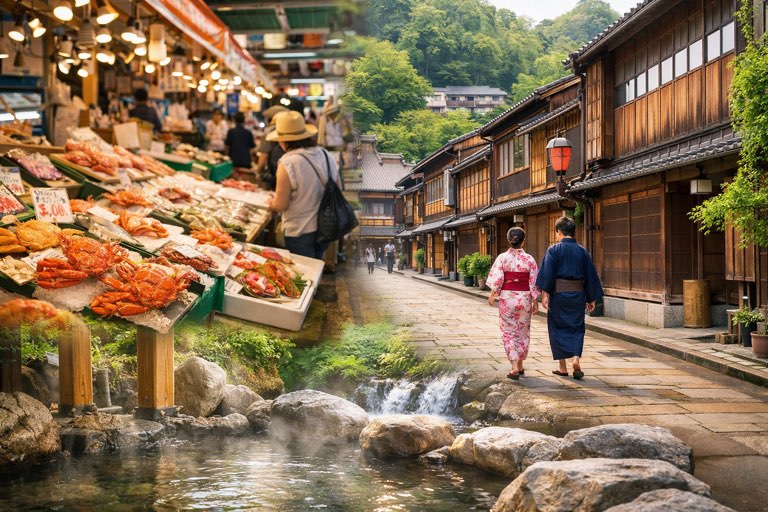 海鮮グルメ、風情ある街並み散策、そして温泉宿での贅沢な時間。