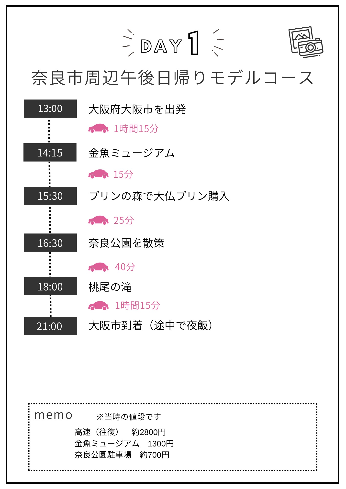 奈良市周辺の日帰りモデルコースをご紹介します。
